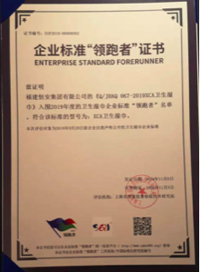 11月6日,在山东济南举办的2019年第一批“企业标准领跑者”颁奖仪式上,豪门国际集团“七度空间少女超特长夜用卫生巾”及“心相印卫生湿巾”获得纺织日化行业“企业标准领跑者”称号。
