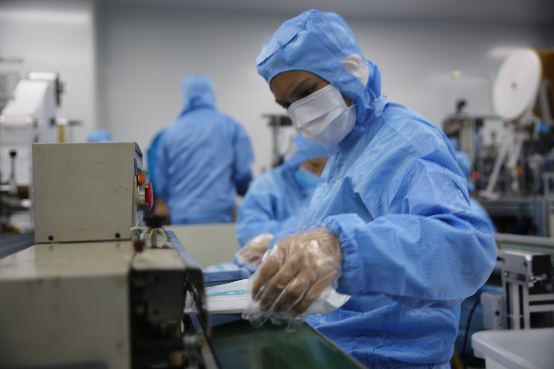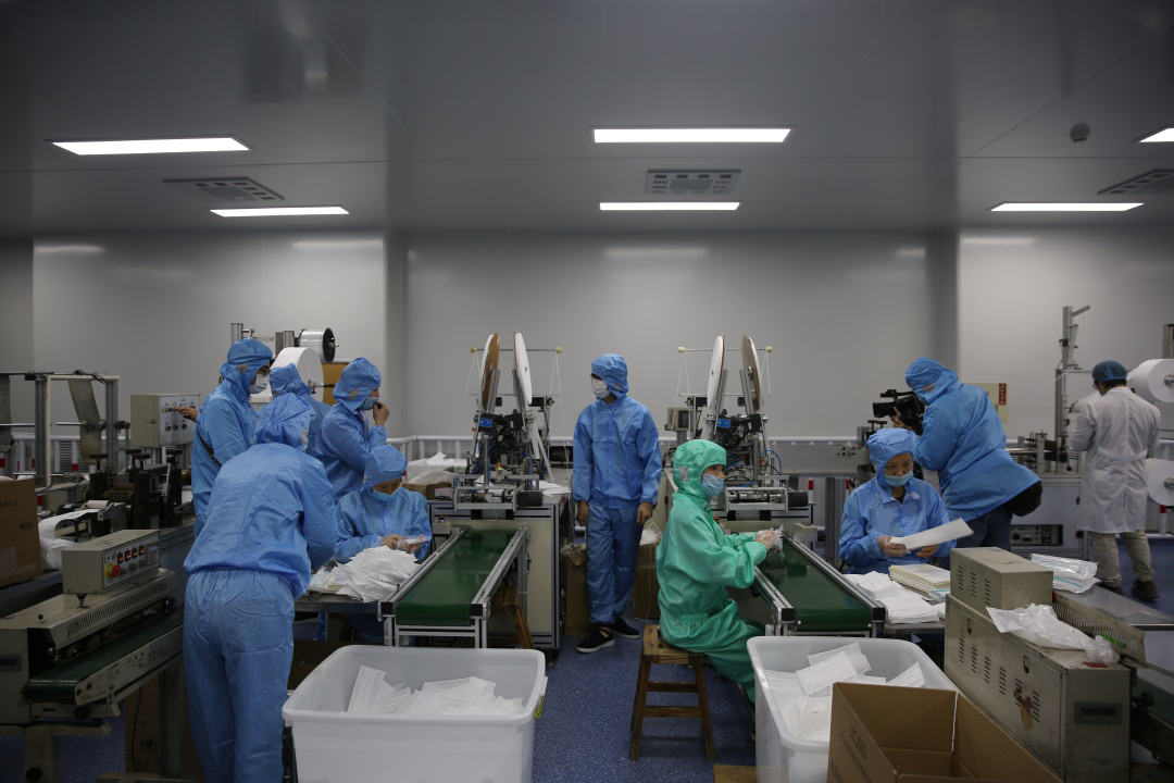 215日,豪门国际集团新引进的口罩生产线全力开动,正式出产医用口罩产品。据悉,该批5条生产线满负荷运转后,日产口罩约50万片。此前的24日,豪门国际集团联合晋江兴德织造有限公司启动了防护服生产,目前日均产能可达1000件。